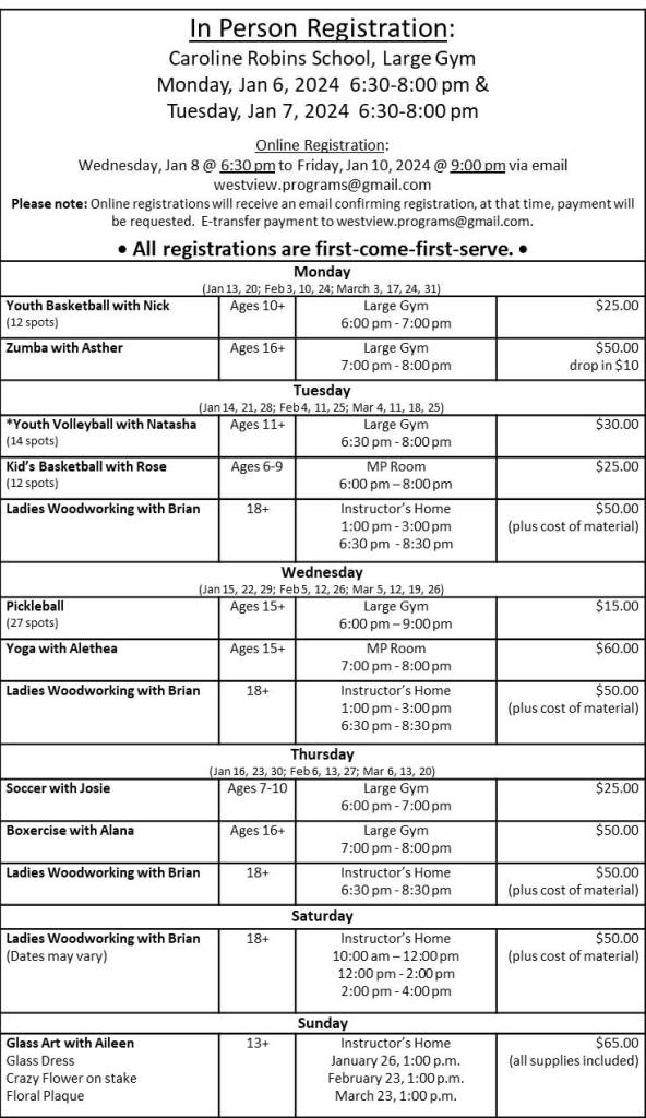 If you have any questions regarding programs or the ages listed, please contact the Program Coordinator at the email address listed below.